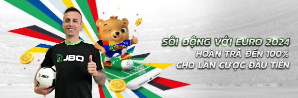 Trong sự kiện đặc biệt mùa Euro 2024 này, JBO mang đến cho khách hàng cá cược thể thao với tiền tệ VND cơ hội vàng nhận 100% giá trị hoàn cược cho vé cược đầu tiên. Để được hưởng ưu đãi này, vé cược của bạn cần thua, với số tiền từ 100K đến 1 triệu đồng, áp dụng cho đến tận 22h59 ngày 15/07/2024 theo giờ Việt Nam. Trong trường hợp các trận đấu đặc biệt, bạn có thể nhận hoàn cược lên đến 2 triệu đồng.
