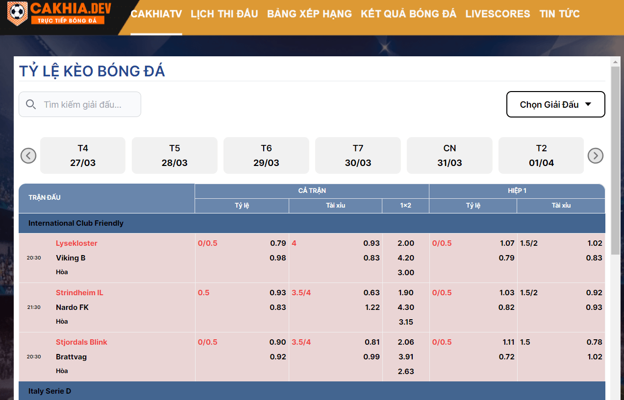Tỷ lệ kèo bóng đá Tài Xỉu hot nhất tại cakhia tv