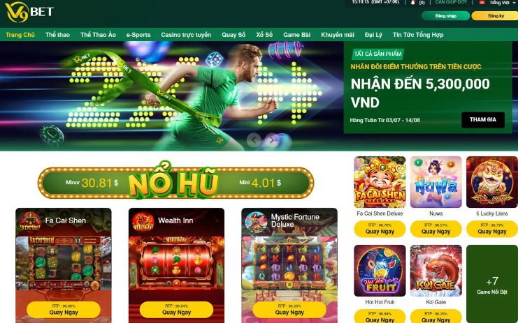 Đến với V9BET, anh em còn được tham gia vào thế giới giải trí bất tận với hàng ngàn trò chơi Slot hấp dẫn, từ các trò chơi cổ điển đến các phiên bản mới nhất. Qua đó mà nhà cái tự tin mang đến cho người chơi những trải nghiệm thú vị và cơ hội nhận thưởng lớn.